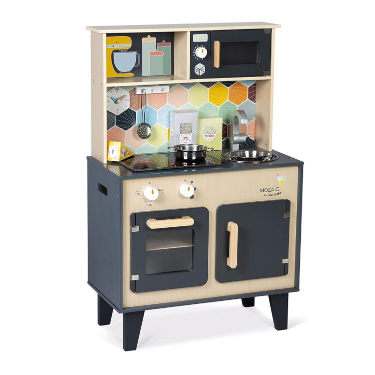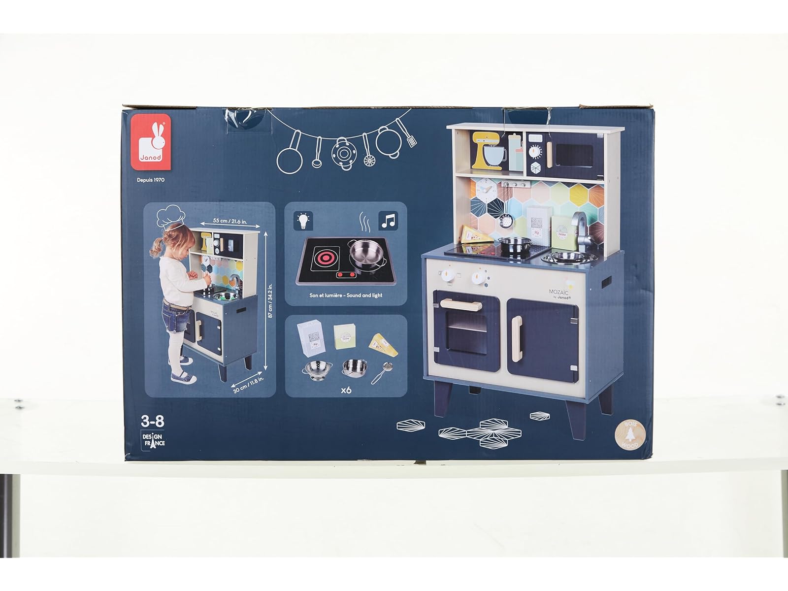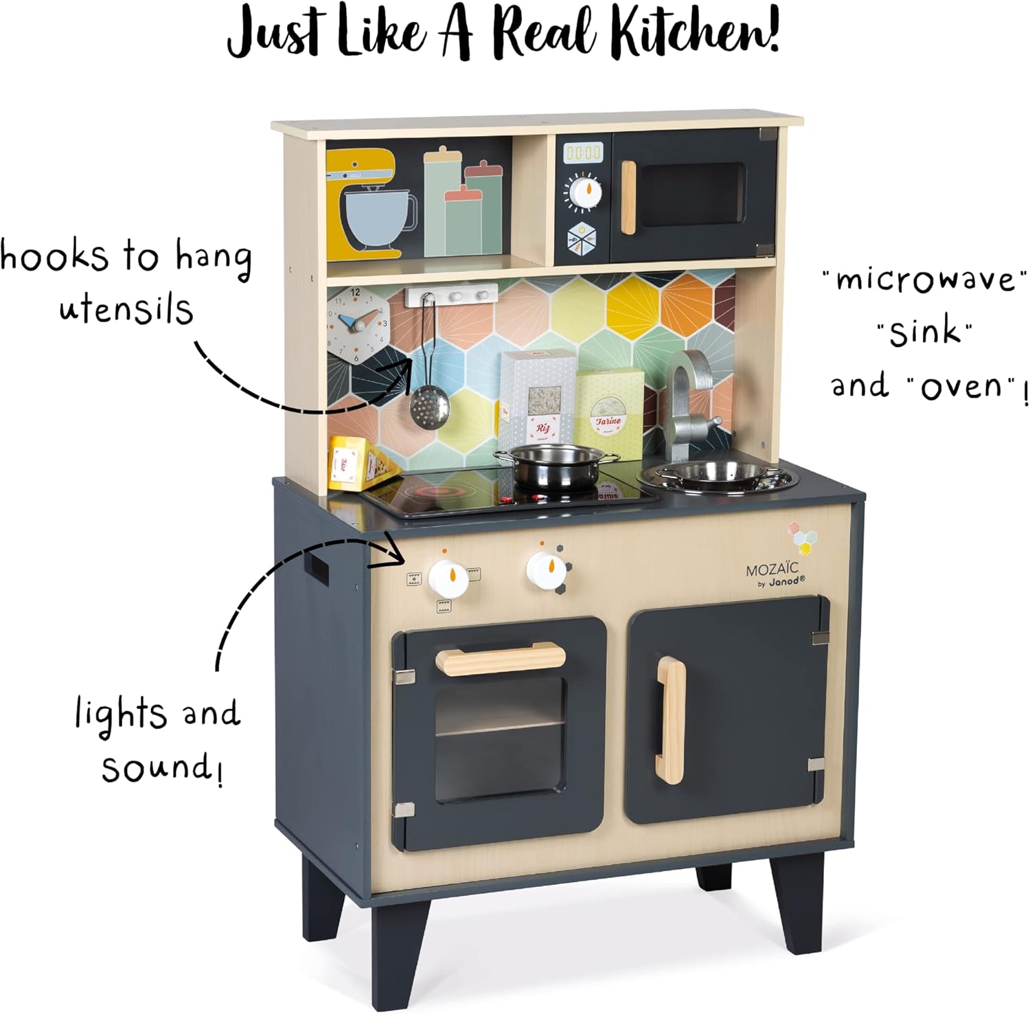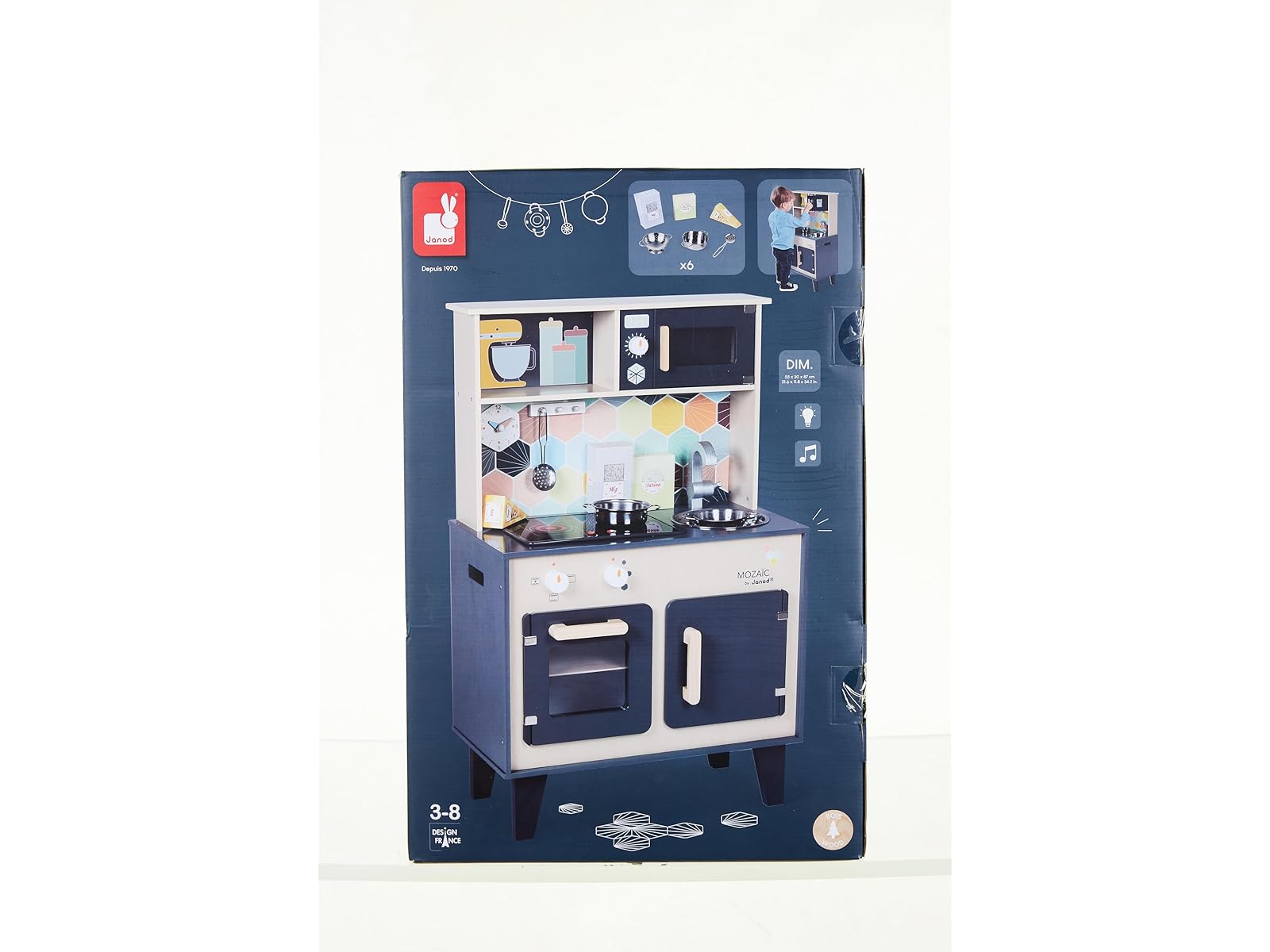 Janod Mozaic Spielküche für Kinder Kinderküche mit Sound und Licht - Holzküche Zubehörteilen