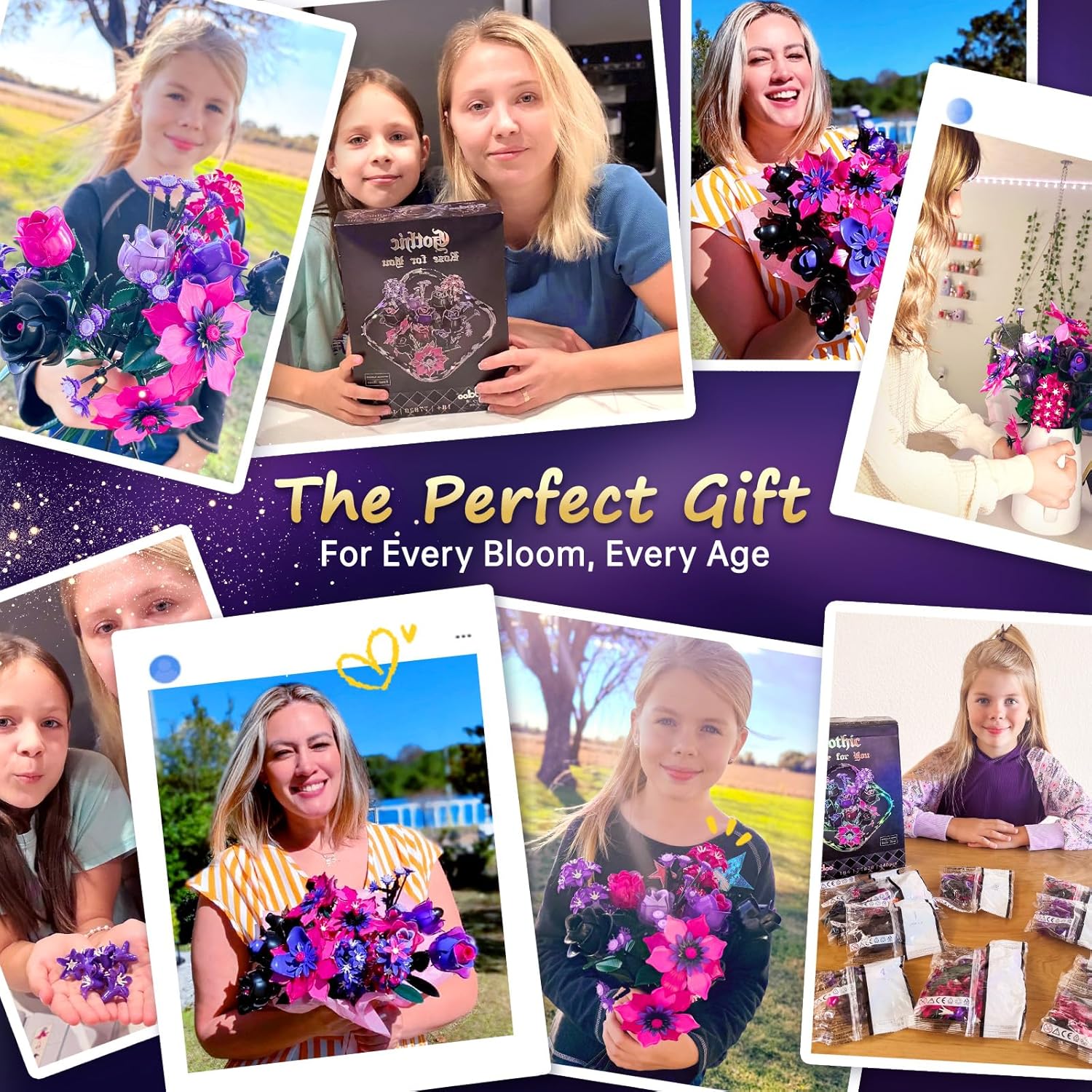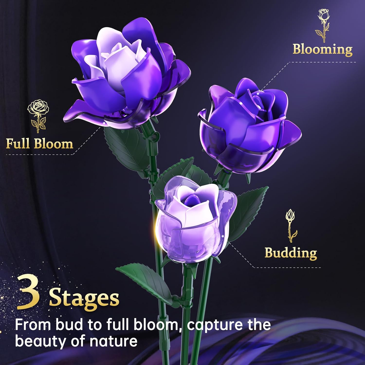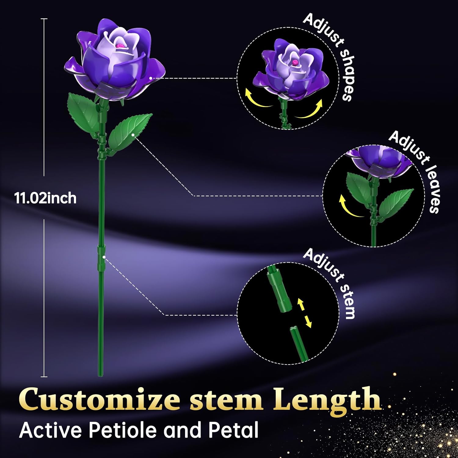 Gothic Rosenstrauß Bausatz - 446x Klemmbausteine - Botanik Deko Valentinstag Geburtstag