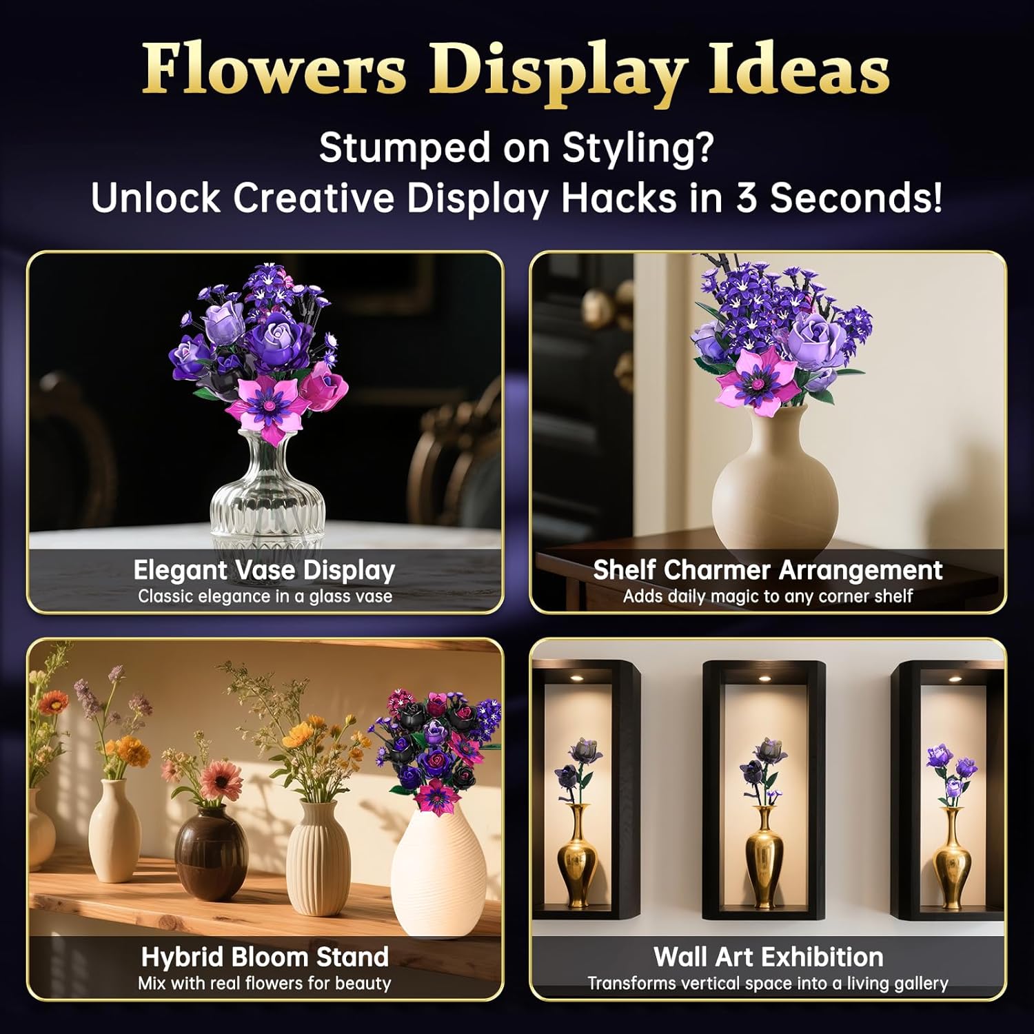 - Individuelles Design & kreativer Bauspaß: Mit extra-langen flexiblen Stielen lässt sich die Länge problemlos an jede Vase anpassen. Durch bewegliche Blütenblätter und Blätter können Kinder und Erwachsene realistische Arrangements gestalten. Vollständige Kompatibilität mit LEGO Blumen ermöglicht unendliche Kombinationsmöglichkeiten für einzigartige Deko-Ideen, die immer wieder überraschen.