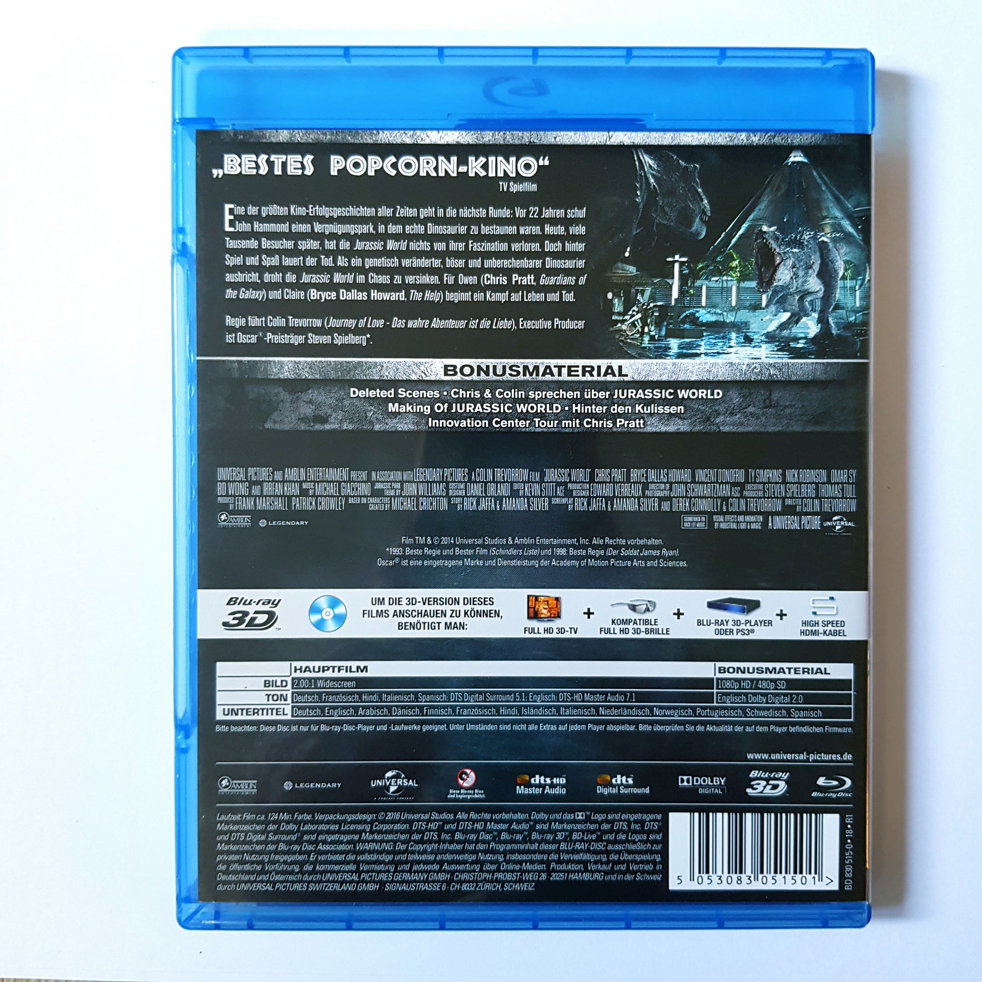 Jurassic World 3D - Chris Pratt - Blu Ray 3D + Blu Ray Zustand sehr gut