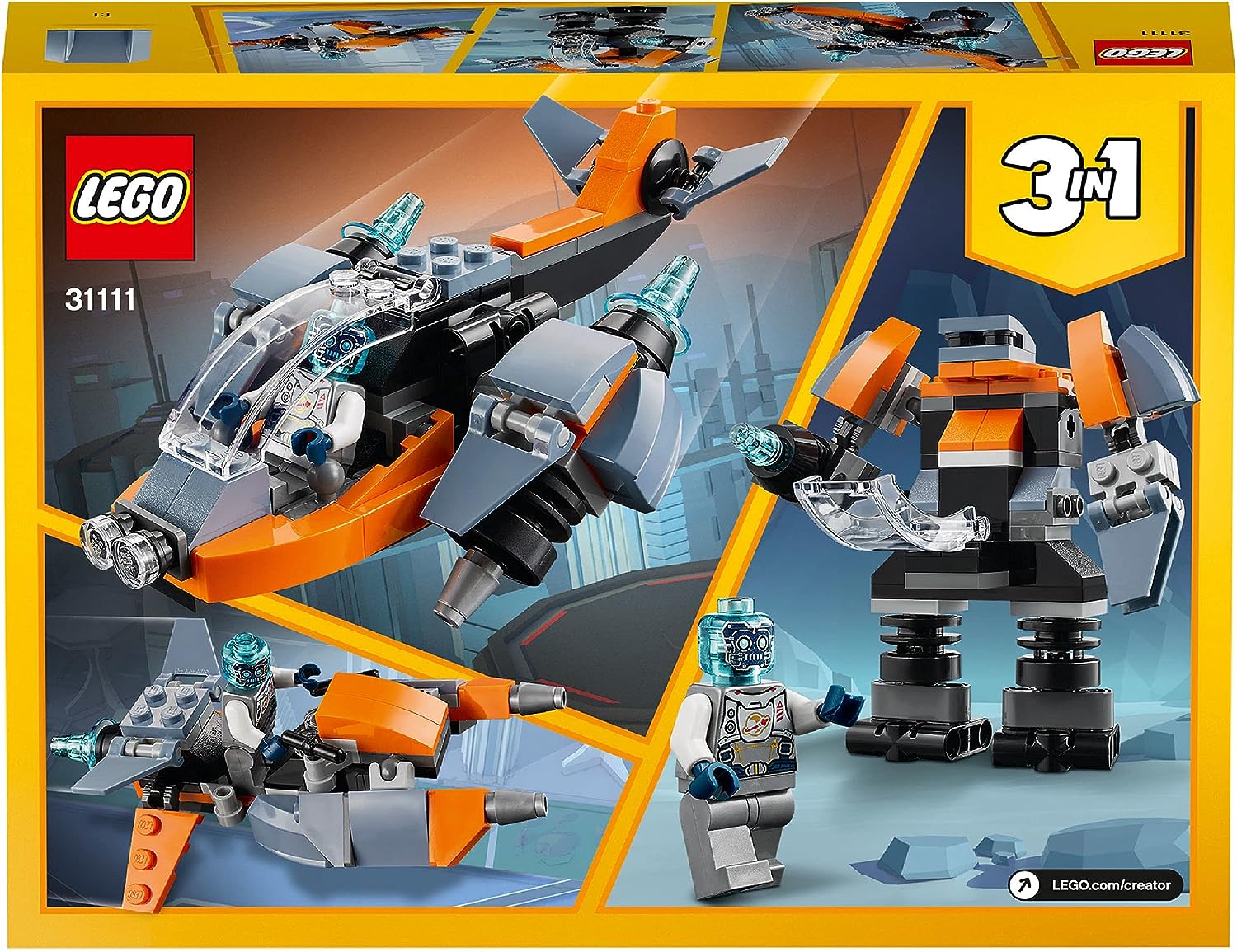 LEGO 31111 Creator 3-in-1 Cyber-Drohne - Cyber-Mech - Hoverbike Roboter Minifigur