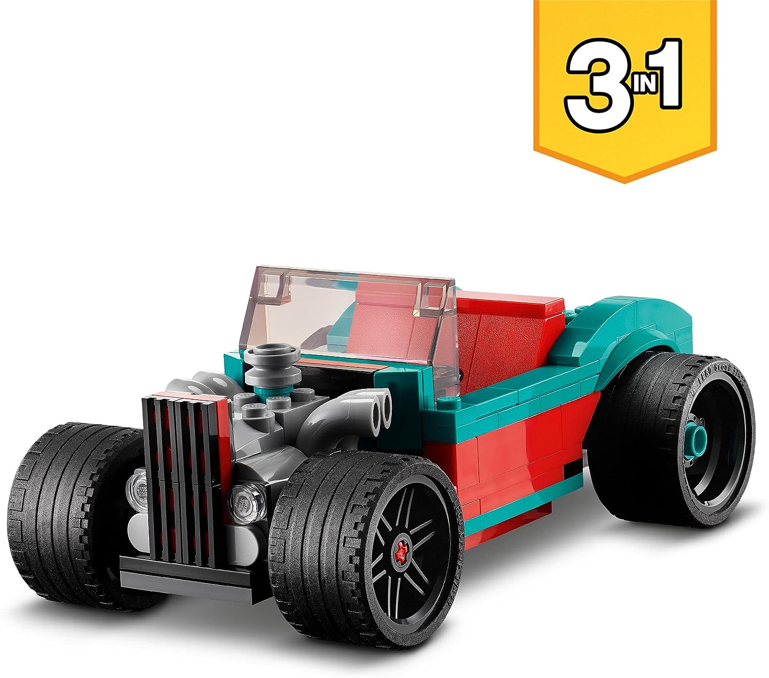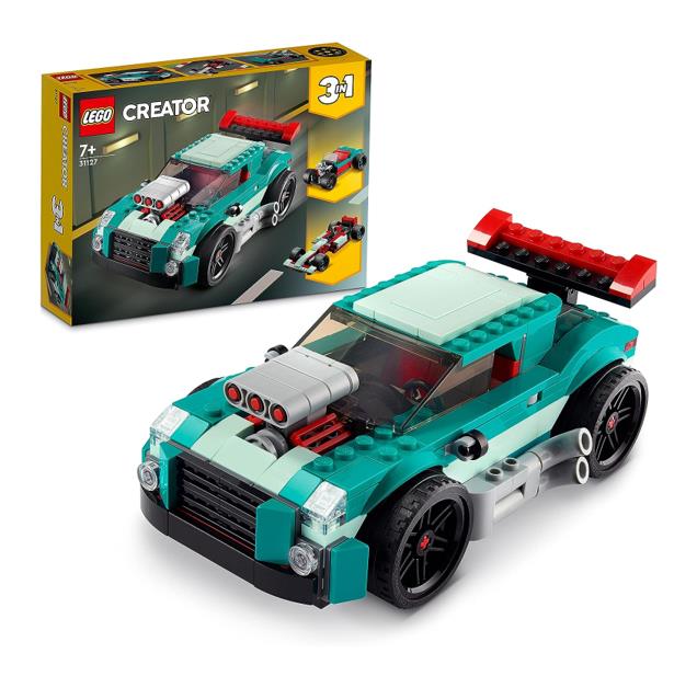 - Das LEGO Creator 3-in-1 Straßenflitzer Bauset enthält 3 Modellautos in einem: ein Muscle Car, einen Rennwagen und einen Hot Road