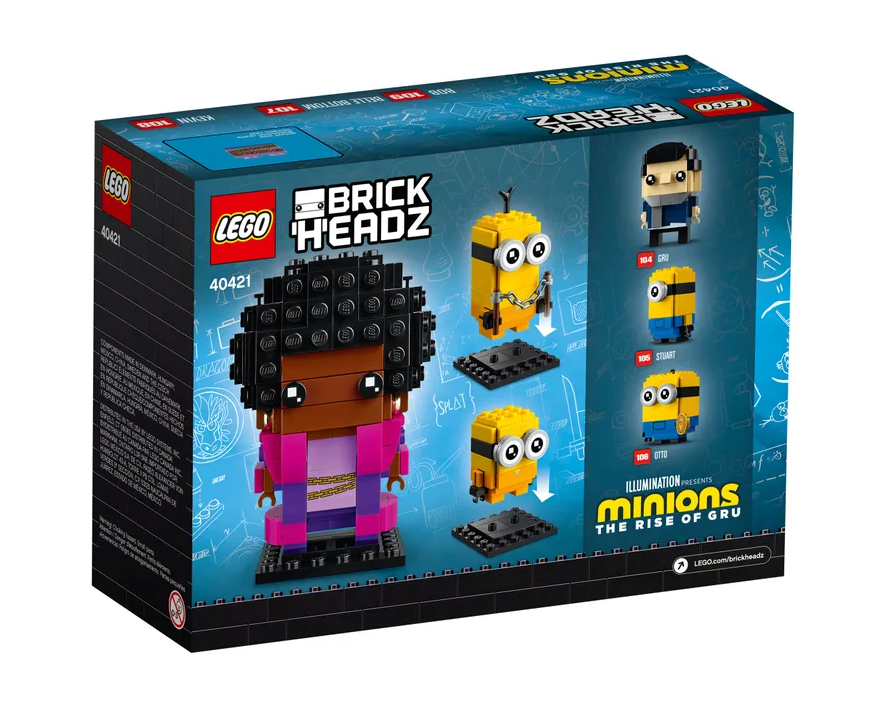 - Lässt sich mit dem LEGO® BrickHeadz™ Set „Gru, Stuart & Otto“ (40420) kombinieren, um noch mehr albernen Schabernack zu ermöglichen.