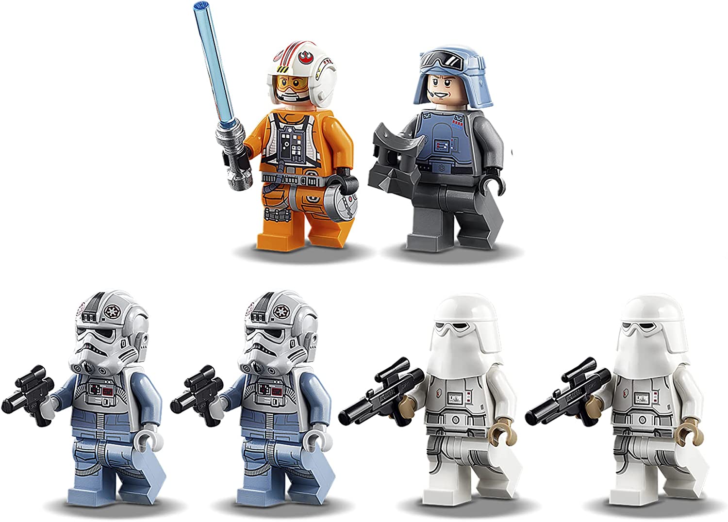 - Dieses Bauspielzeug für Kinder enthält 6 LEGO Star Wars Minifiguren – Luke Skywalker, General Veers, 2 AT-AT Drivers und 2 Snowtroopers mit Ausrüstung –, um das Kräftemessen zwischen Imperium und Rebellenallianz als Rollenspiele nachzustellen.